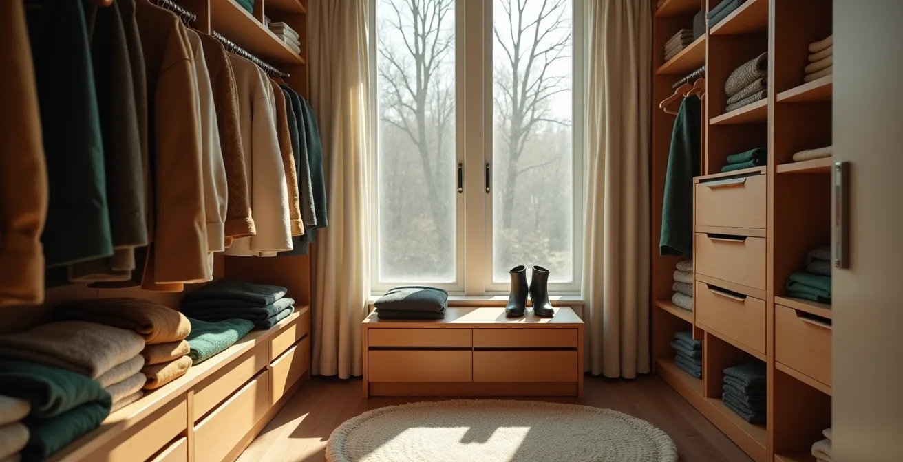 La solution la plus pragmatique pour le Québec est une approche hybride : un tri initial inspiré de KonMari, suivi par un système de rotation saisonnière rigoureux. Cela implique d’avoir un espace de rangement dédié (sous le lit, dans des placards secondaires) pour les vêtements hors saison, idéalement dans des boîtes ou des sacs de compression bien étiquetés.